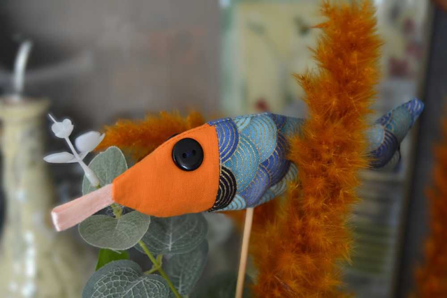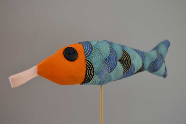 Sardine d'une longueur de 16 cm en tissu bicolore, création fait main et unique :